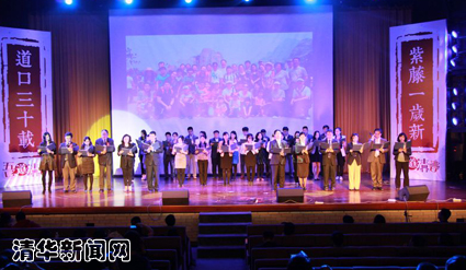 晚会下半场,一曲“共和国之恋”表达了EMBA同学对祖国大好河山的依恋与热爱;舞蹈“月光下的凤尾竹”以优美的舞姿、美轮美奂的背景向我们展现了清新、纯粹的古典文艺风;小品“道口故事会”以幽默诙谐的方式再现了五道口人日常生活中的欢声笑语和风趣轶事;歌曲串烧“爱在道口”表达了2010级硕士生们即将离开母校的依依不舍和难忘情怀;EMBA学员的歌曲联唱“百年清华中国梦”表达了这些社会精英对清华新百年的期待、对祖国的祝福和对中国梦的不懈追求。