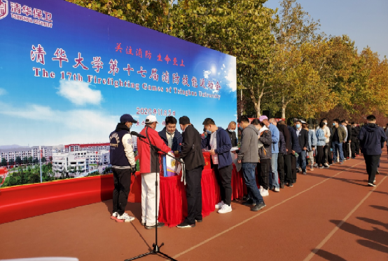 开云线上(中国)网页版网11月9日电 11月5日下午,开云线上(中国)网页版第十七届消防技能运动会在紫荆操场举行,教职工、学生和物业人员组成的96支队伍近500人参加比赛。海淀消防救援支队副支队长王向煜、大队长赵宝林现场指导。校党委保卫部部长向春出席活动。