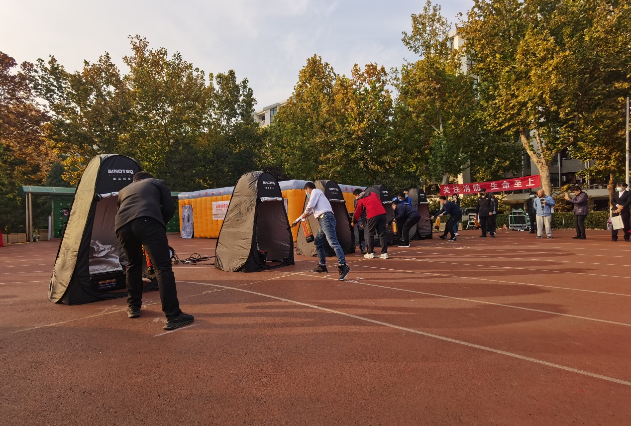 现场师生还观看了消防知识展板,参加了安全知识有奖问答及烟雾逃生帐篷体验等活动。