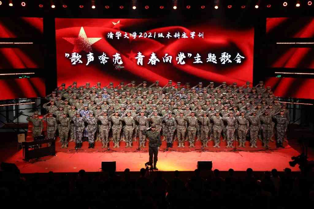 歌声嘹亮,青春向党。2021级本科生军训主题歌会内容丰富,以同学们喜闻乐见的形式,回顾中华民族百年奋斗的历史,弘扬伟大建党精神。通过参演和观看主题歌会,同学们切身体会到当代青年的历史责任,也将不忘初心、砥砺前行,继续书写清华人的家国情怀和使命担当。