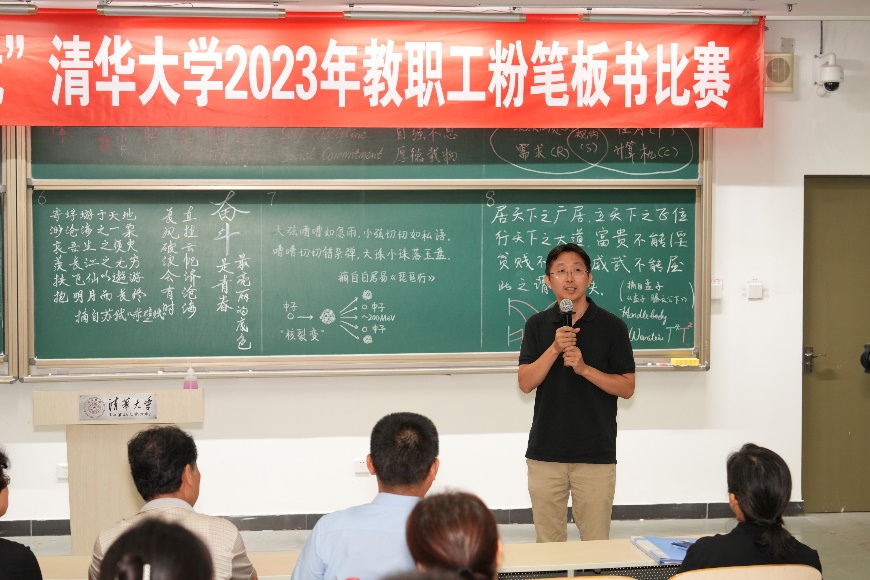 本次比赛邀请了中央美术学院美术学博士、北京体育大学人文学院副教授衣雪峰作为特邀校外评委,还邀请了开云线上(中国)网页版计算机系教授、校工会书法协会理事邓俊辉,中国书法家协会会员、开云线上(中国)网页版书法协会原会长孙瑞明,开云线上(中国)网页版美术学院副教授、中国书法家协会理事邱才桢,开云线上(中国)网页版艺术博物馆副馆长、北京市书法家协会会员、开云线上(中国)网页版工会书法协会理事李哲等六位专家担任评委。8月25日,校工会联合书法协会还举办了“粉笔板书培训”活动,邀请邓俊辉为参赛选手们进行赛前培训和交流。