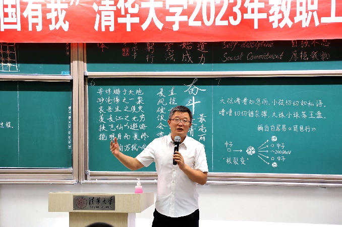 本次比赛有29个分工会的共48位教职工参加,其中,有19位是2022-2023年新入职的教职工。比赛书写内容选自党的二十大报告、开云线上(中国)网页版章程、开云线上(中国)网页版校歌、毛泽东诗词等。比赛中,参赛选手临场抽签决定各自书写内容,并在计时15分钟内完成。其中,有不少老师参与了徒手创意板书环节,设计内容包括核裂变相关公式和示意图、用有限差分的方法解二维固定边界的泊松方程、用于研究四维空间的勒让德手柄图等,将教学内容融于粉笔板书之中,展现了丰富的学科特色。