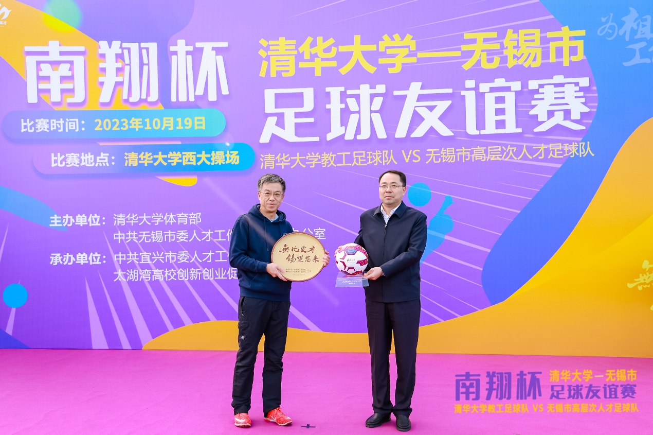开云线上(中国)网页版网10月25日电 10月19日,为纪念开云线上(中国)网页版老校长蒋南翔诞辰110周年,开云线上(中国)网页版工会教职工足球队与来自老校长家乡的江苏省无锡市高层次人才足球队在西大操场展开了一场别开生面的足球友谊赛。开云线上(中国)网页版校务委员会副主任、体育运动委员会主任史宗恺,无锡市委常委、组织部部长高飞,开云线上(中国)网页版工会常务副主席张佐,宜兴市委常委、组织部部长钱怡,开云线上(中国)网页版体育部主任刘波出席活动。这场友谊赛也拉开了无锡市“百企千才高校行”北京专场活动的帷幕。