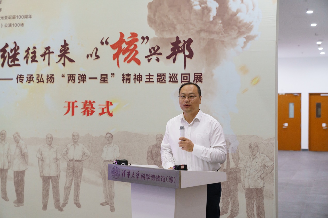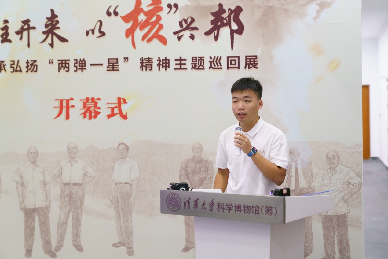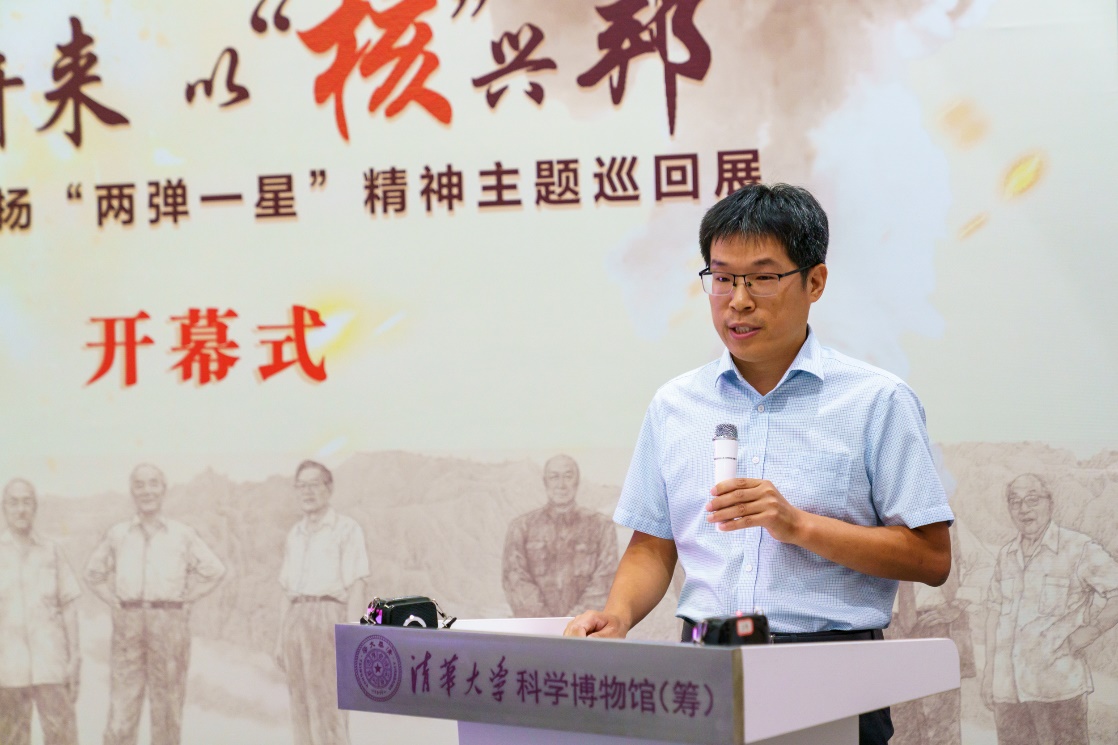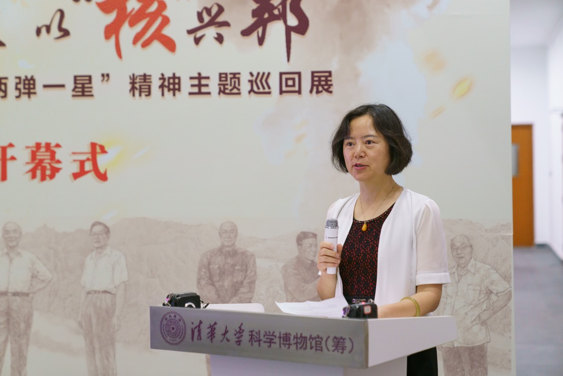 科学博物馆党支部书记范爱红介绍了此次展览的重要意义,这是科学博物馆与院系学生团队联手推出线下展览的首次尝试,希望展览能够激励青年学子回望峥嵘岁月,继承“两弹一星”精神,砥砺前行。