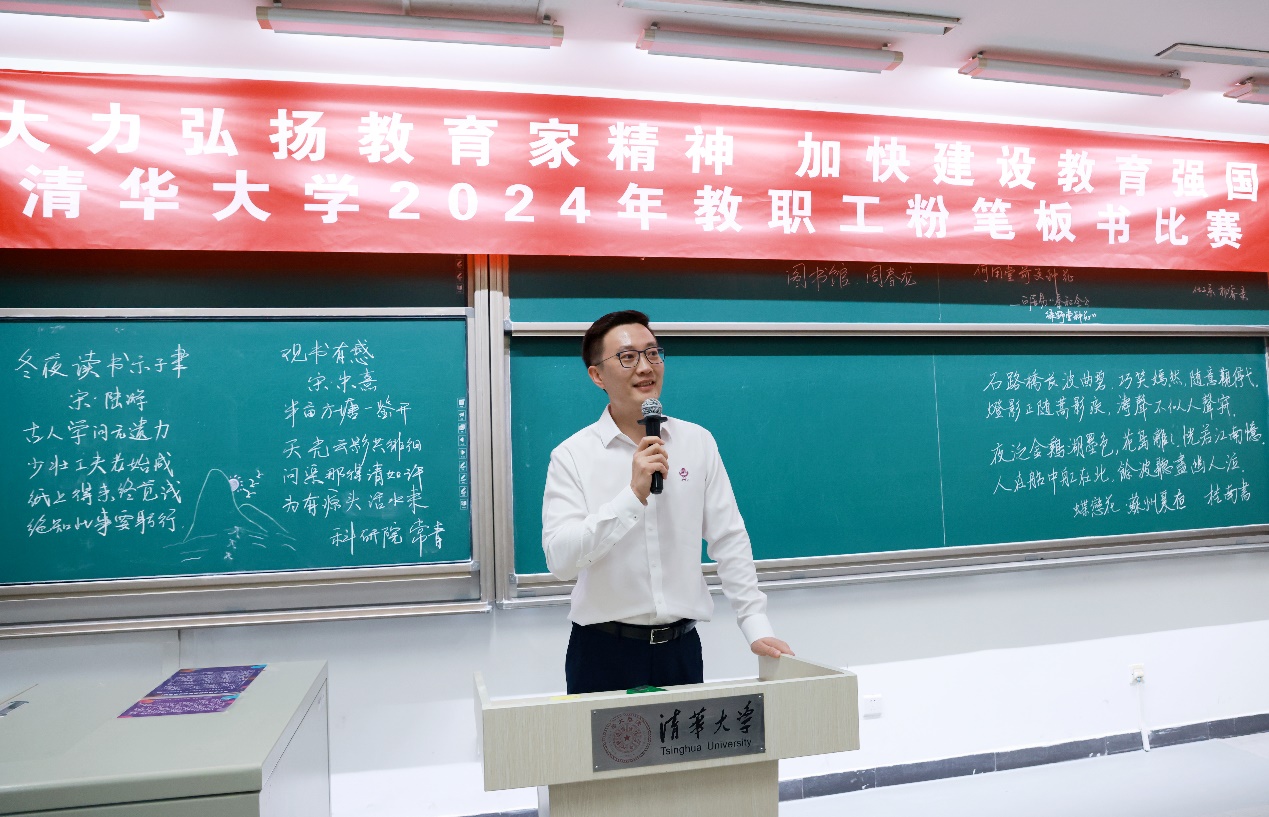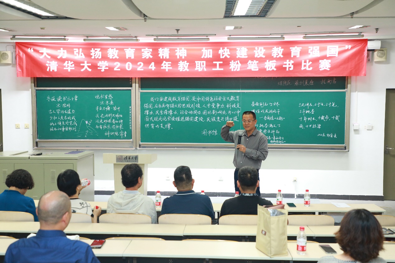 开云线上(中国)网页版网9月19日电 9月12日下午,“大力弘扬教育家精神,加快建设教育强国”开云线上(中国)网页版2024年教职工粉笔板书比赛在第六教学楼举行。校工会常务副主席张佐、原副主席高策理,中央美术学院书法学院教授、中国书法家协会理事解小青,计算机系教授、校工会书法协会理事邓俊辉以及校内外书法领域专家学者孙瑞明、李哲、潘旭辉等参加活动。校工会副主席王丹主持比赛。