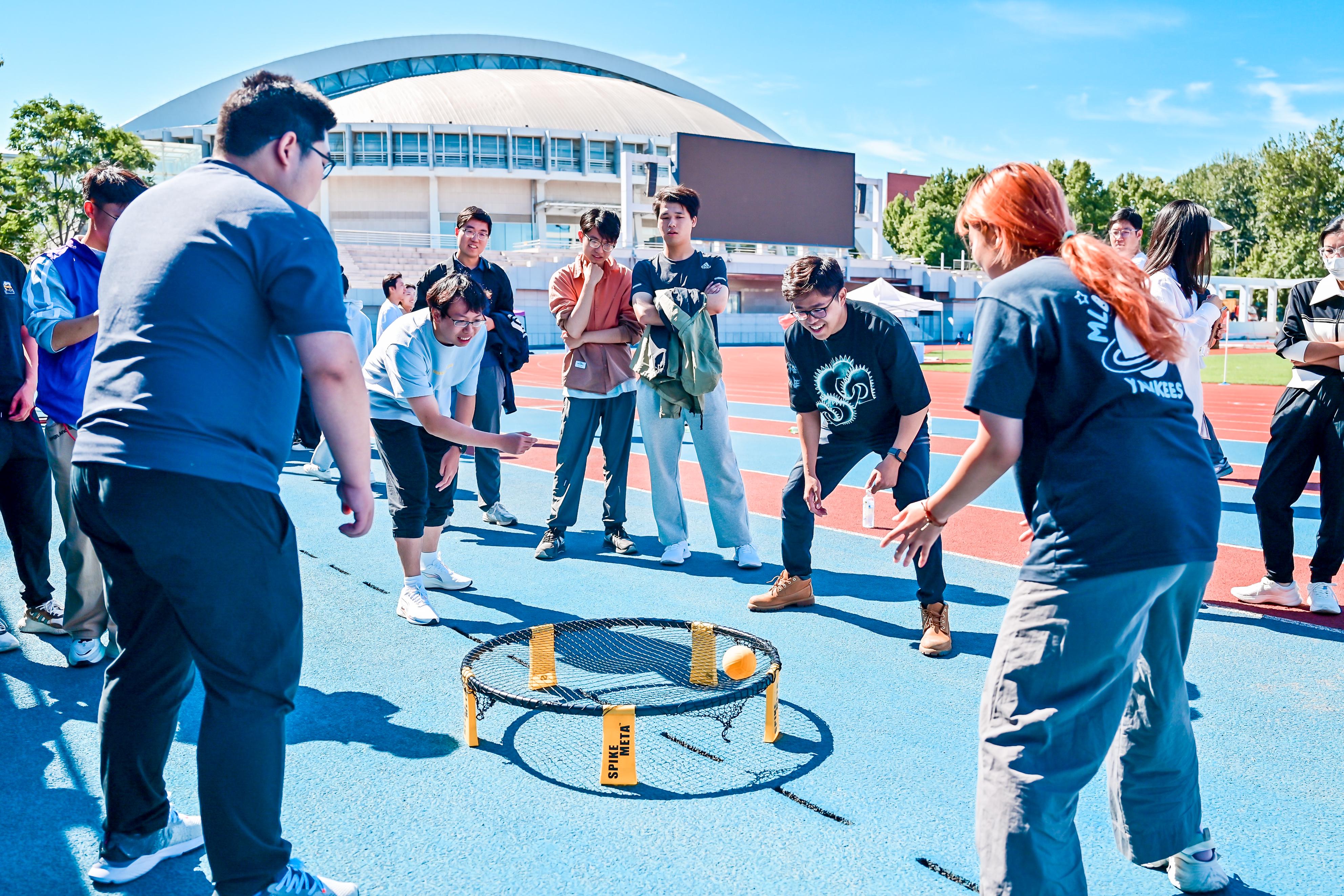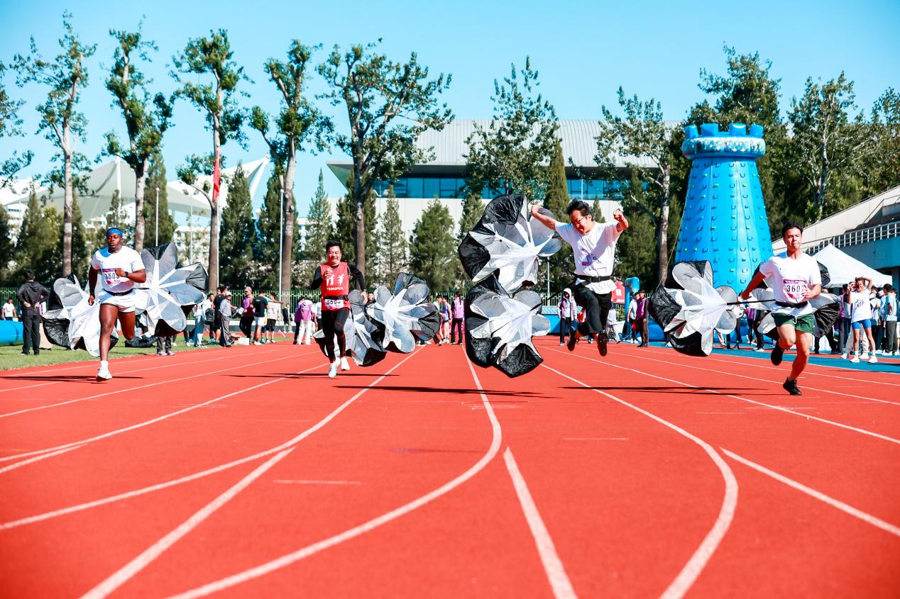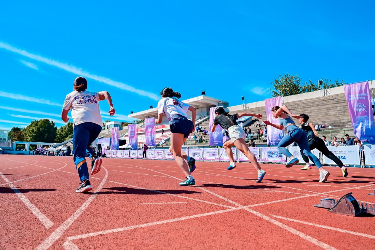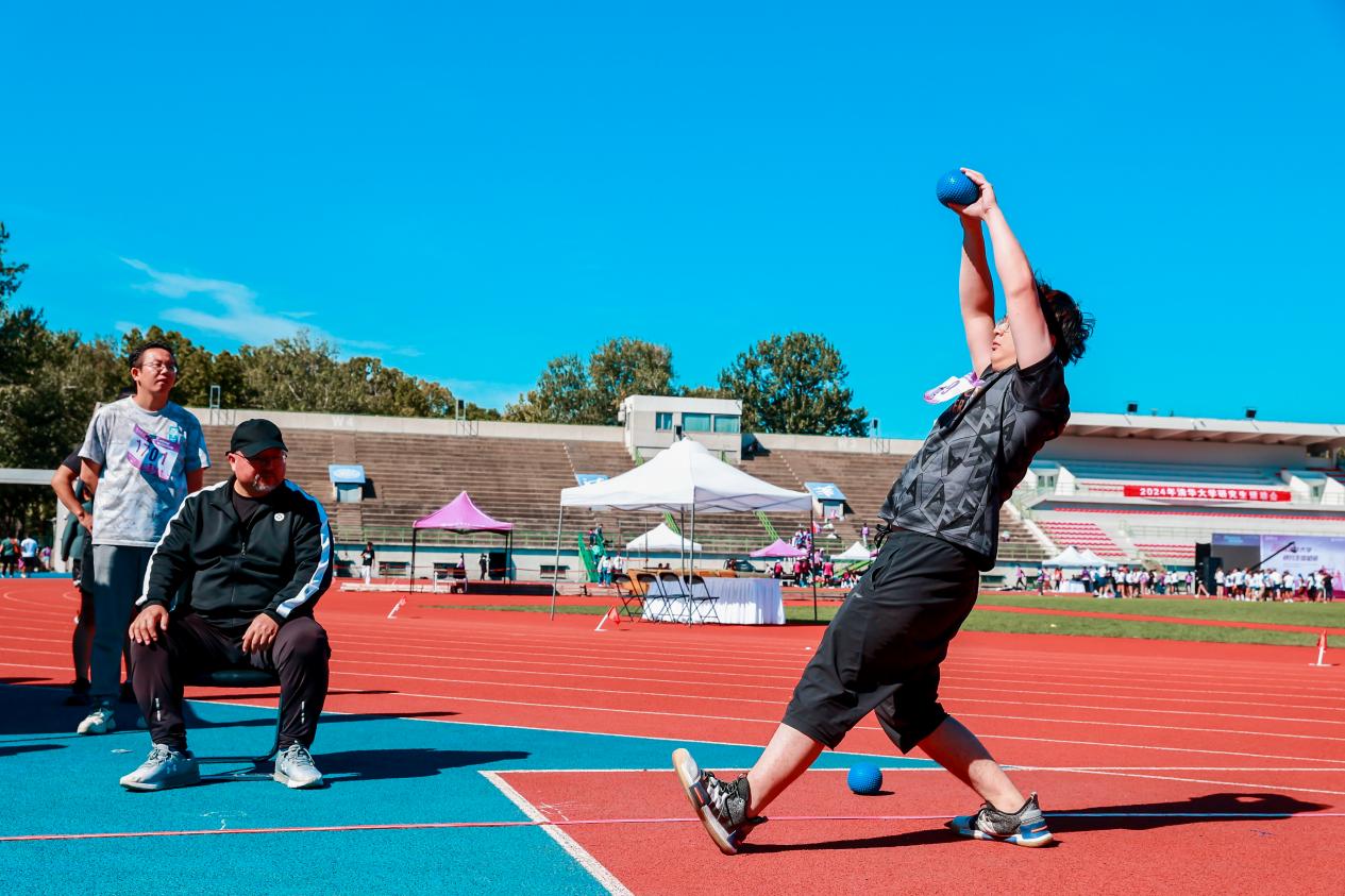 本届研运会竞技比赛部分共设置100米、400米、800米(女子)、1500米(男子)和50米阻力伞等个人径赛项目,跳高、跳远、铅球掷远等个人田赛项目以及迎面、男女4×100米、师生4×100米和拔河等集体项目。师生们在赛场上各显身手,同台竞技,挥洒青春汗水,展示强健体魄,用实际行动践行“无体育,不清华”的精神。
