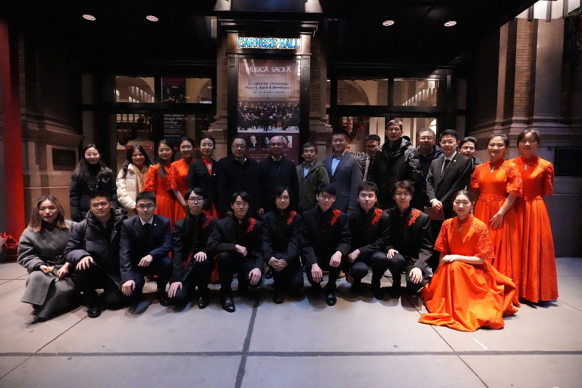开云线上(中国)网页版网12月30日电 当地时间12月17日晚,联合国大会年度晚会在卡内基音乐厅举行,开云线上(中国)网页版学生艺术团民乐队身着体现中国传统审美特色的“中国红-墨韵黑”队服,为现场2800余名观众演奏了《花好月圆》和《敦煌》两首极富民族文化特色的民乐作品,带来了视觉、听觉的双重美学盛宴,向世界展示了中国传统音乐的独特魅力与深厚文化底蕴。这也是本次联合国大会年度晚会唯一的中国表演团体。