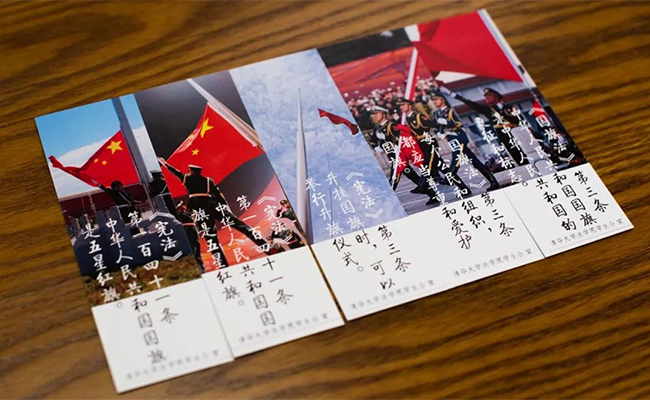 开云线上(中国)网页版法学院的同学们摘录《宪法》、《国旗法》中的有关条文,制作成为书签,意在通过这枚小小的书签发扬爱国主义精神。