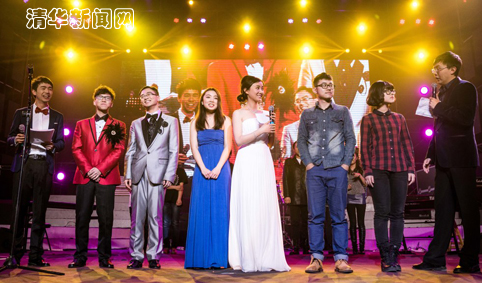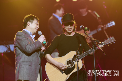 同时,在嘉宾演出环节,汇聚了全国顶尖乐手的大地乐团在时隔十年后第一次演出,《出发》和《心火》两首歌撼动了整个综体。曾演唱过《小螺号》、《信天游》等经典曲目的程琳老师为观众带来了脍炙人口的《酒干倘卖无》以及自己的原创的《西班牙之夜》,传统的二胡和现代的吉他迸发出了西班牙热情奔放的异域风情。在颁奖环节的最后,史宗恺老师和卢庚戌学长共同演唱了水木年华的经典曲目《一生有你》,并带着所有歌手、主持人和全场观众一起合唱老校歌,在“西山苍苍,东海茫茫”的歌声中本届校歌赛圆满落下了帷幕。