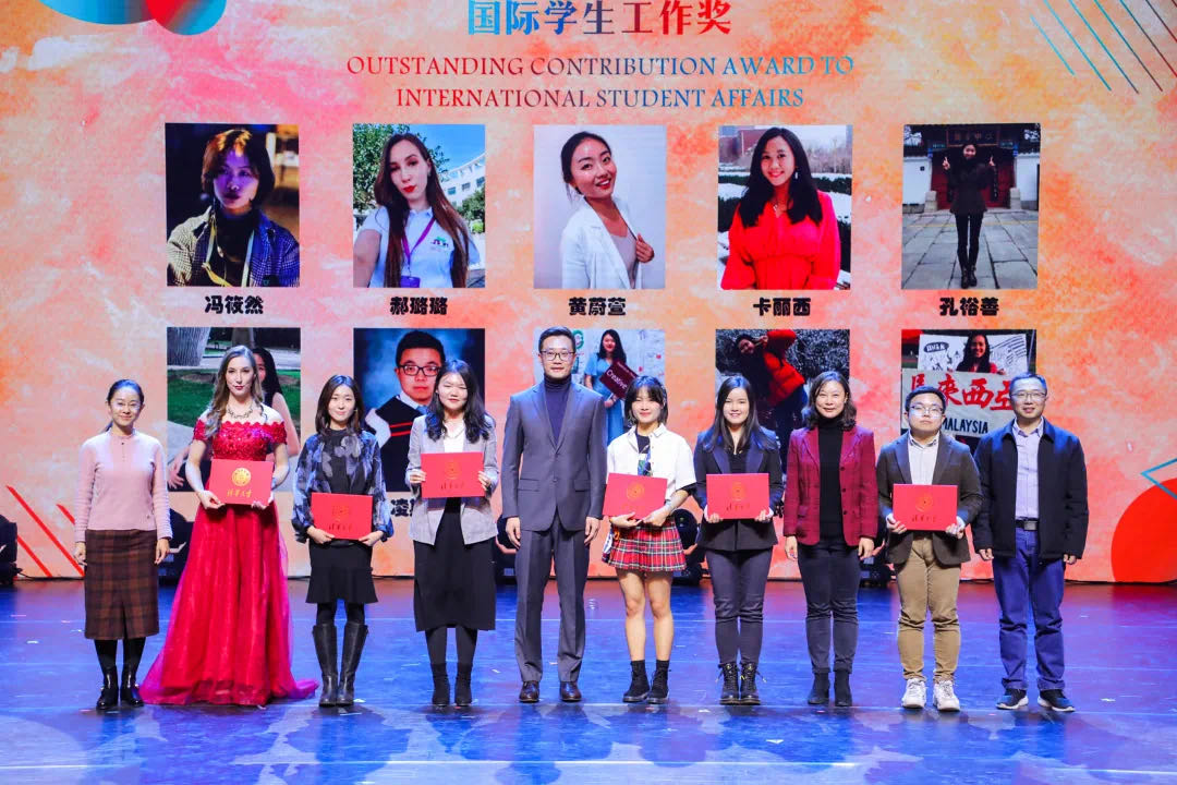 晚会上,国际处副处长孟波,国际处副处长、国际学生学者中心执行主任李彦夫,校团委副书记阎博,艺术博物馆副馆长李哲为2020年度社会工作表现突出的10位中外学生颁发了“国际学生工作奖”,以表彰他们在国际学生工作及校园国际化建设中所作出的突出贡献。