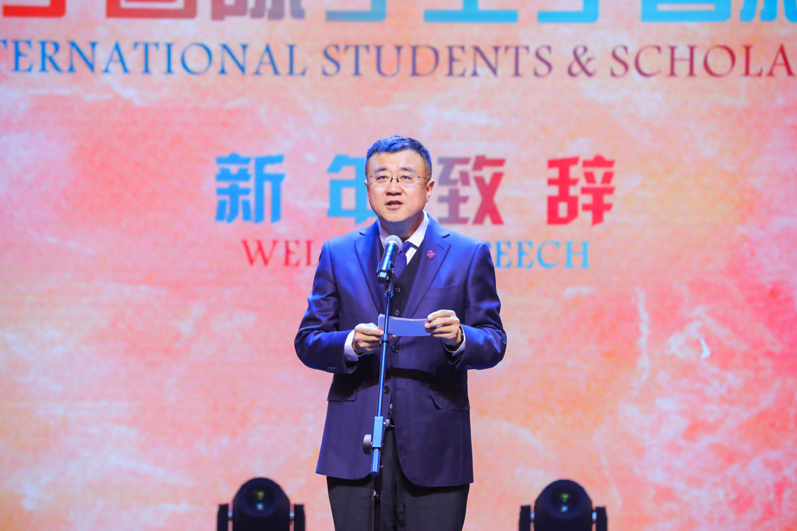 杨斌在致辞中代表学校向国际学生学者致以节日的问候和新年的祝福。他表示,2020年是极其特殊的一年。新冠疫情突然暴发,清华师生守望相助、共克时艰,在疫情大考中交出了一份合格答卷。疫情发生以来,学校全面推进在线教学,积极开展国际交流合作,为全球抗击疫情、世界高等教育的发展作出了贡献。今天,身处世界各地的国际学生学者跨越时间、空间的阻隔,齐聚一堂,辞旧迎新,以线上线下融合的形式呈现精彩表演,彰显着每个清华人自强、创新的精神品质。学校时刻关心因疫情无法返校的国际学生学者,也期待着疫情之后再次与大家相聚在校园。新的一年,开云线上(中国)网页版将迎来110周年校庆,杨斌代表学校向所有国际学生学者表示衷心感谢,希望与大家共同建设并见证更美好的清华。