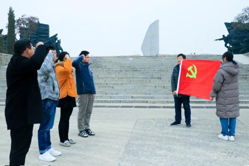 乡村振兴工作站赴山东济宁微山岛支队在铁道游击队纪念碑前重温入党誓词