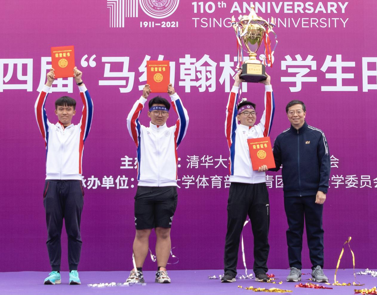 闭幕式开始前,校领导邱勇、陈旭、姜胜耀、王希勤、吉俊民、杨斌、尤政、郑力、向波涛、彭刚身着深色运动服,在刚刚结束比赛的跑道上列队待发。自2016年以来,每年“马杯”闭幕式都以校领导带队绕场一周的方式入场,传递体育育人的清华传统。
