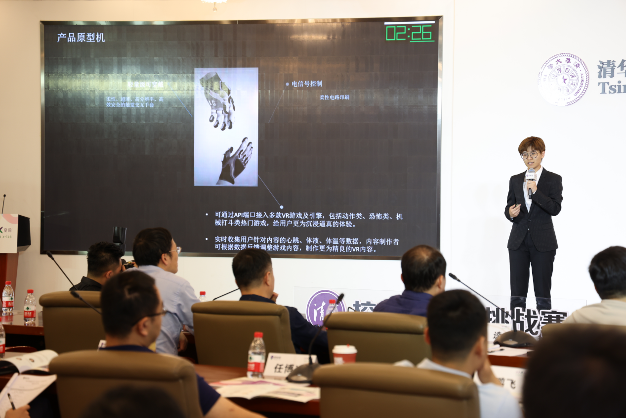 比赛现场,参赛团队展示项目核心技术优势、市场竞争优势及项目发展计划等核心信息,答辩环节更是精彩纷呈。随后,李竹对今年“校长杯”团队的整体特点和项目的优劣势进行总结点评。他谈到,所有参赛项目在科技成果转化过程中都具备鲜明的清华特点,并且都有具体的落地场景。他同时建议创业者和投资人在设计或考察项目时要有一定的想象力和前瞻性。