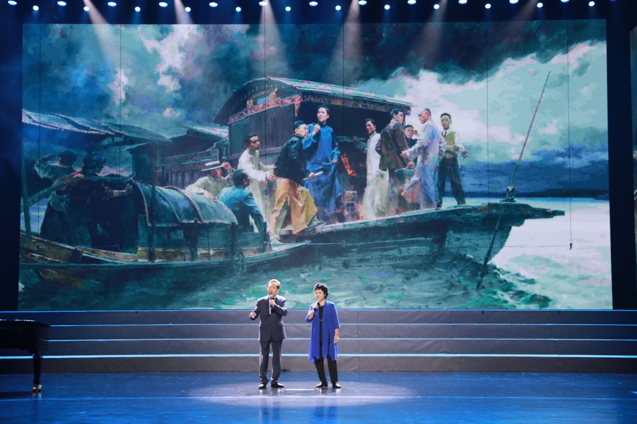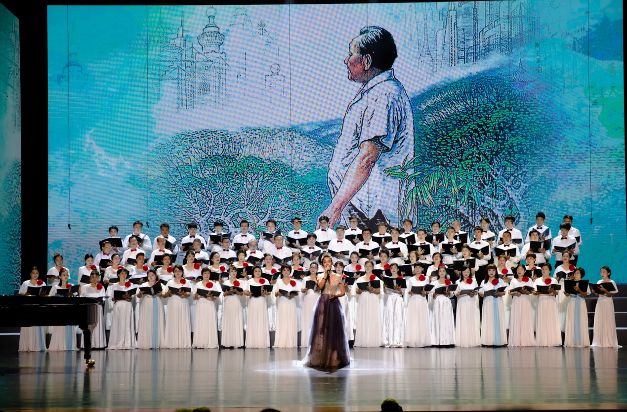 最后,台上台下共唱《没有共产党就没有新中国》,铿锵歌声将音乐会推向高潮,全场响起经久不息的掌声。