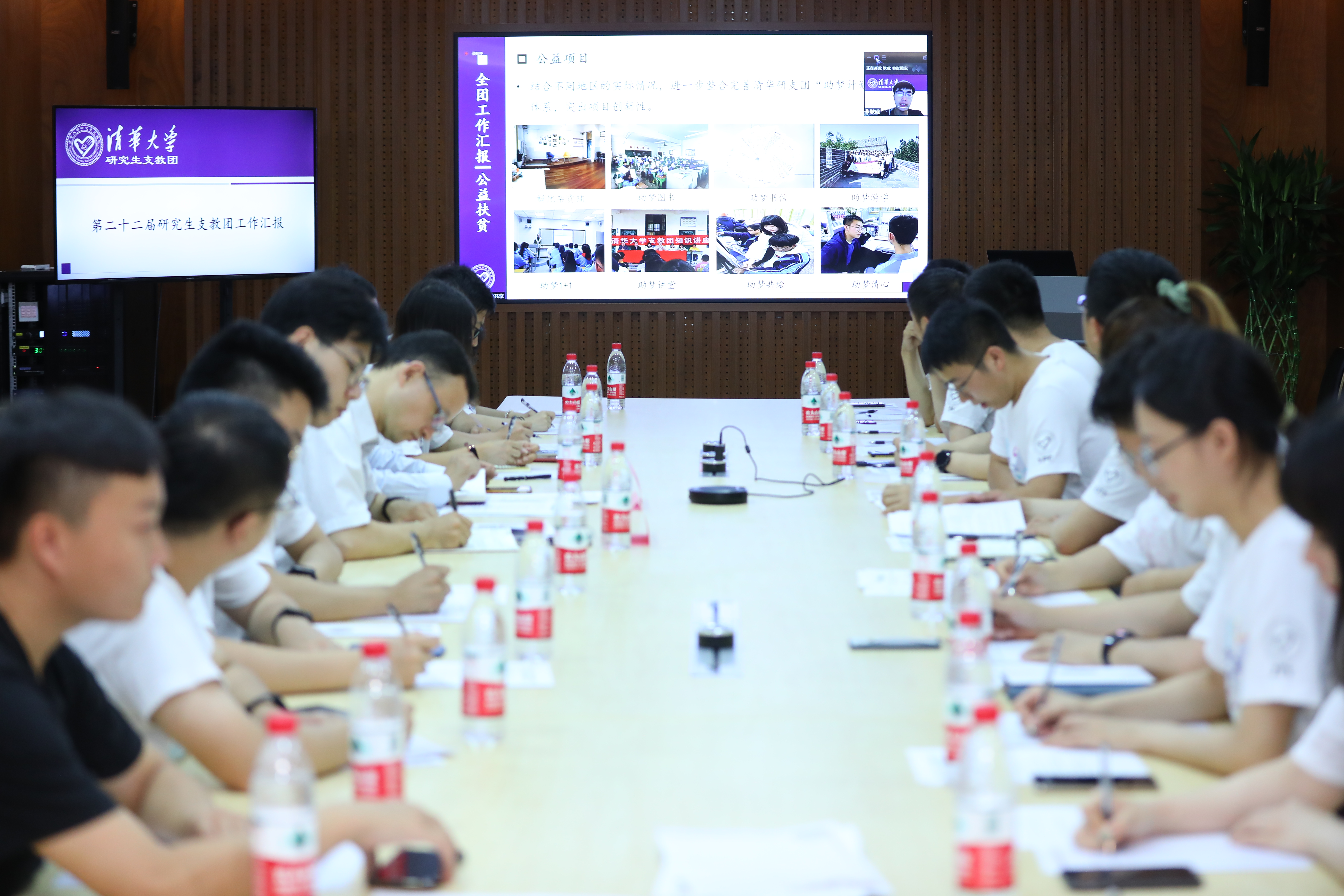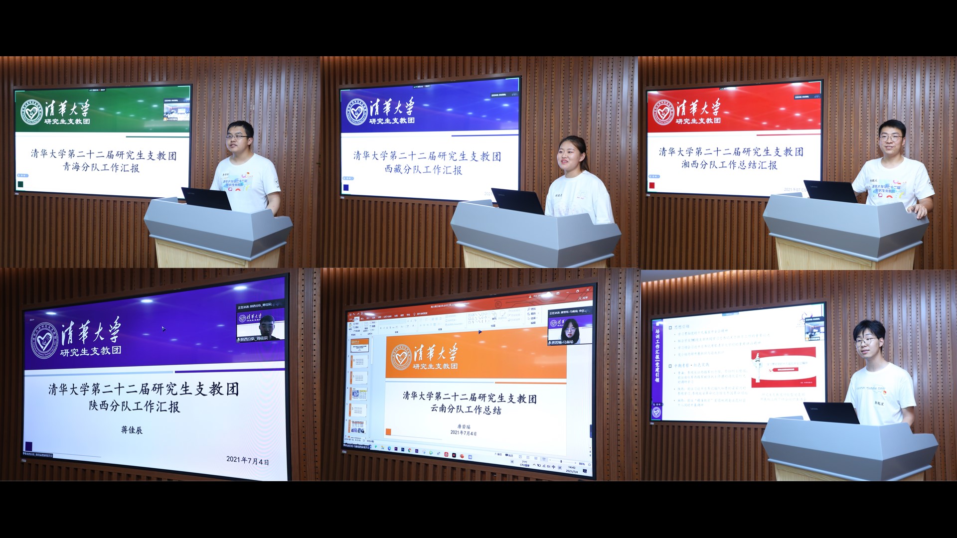 青海分队志愿者李沛桐、西藏分队志愿者荆晓青、湘西分队志愿者杨鹏成、陕西分队志愿者蒋佳辰、云南分队志愿者唐若瑶分别从团队概况、教育教学、党建团学、公益助梦、实践调研等方面对各分队一年来的工作情况进行汇报。五个支教地在教学育人上均取得良好成效,党建、团学、公益、实践等工作也顺利开展。志愿者严谨踏实的工作态度和各具特色的教学方法获得了支教地师生及相关人员的充分肯定。此外,第二十三届研究生支教团团长郭魁星汇报了自组建以来一年的培训工作。