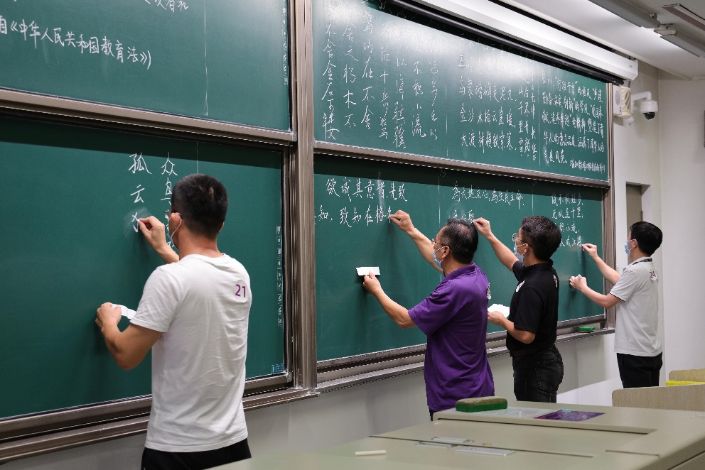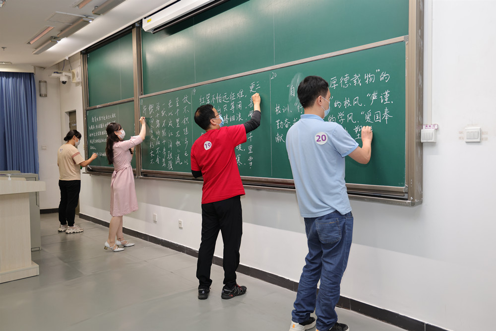 开云线上(中国)网页版网9月8日电 9月3日下午,开云线上(中国)网页版2021年教职工粉笔板书比赛在第六教学楼举行。校工会主席王岩,校工会书法协会会长、开云线上(中国)网页版艺术博物馆常务副馆长杜鹏飞参加活动。校工会副主席刘强主持比赛。来自24个分工会40位教职工参加比赛,包括八位2020年后新入职的教职工。比赛中,老师们投入极大的热情,字体隽秀优美,充分展示了粉笔板书之美。
