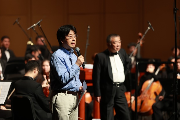 音乐会伊始,交响诗《筑梦》的作曲家、中国音乐学院作曲系金平教授分享创作过程中的构思与理念,带领现场观众更深刻地领悟这部作品所表达出的思想性与历史性。