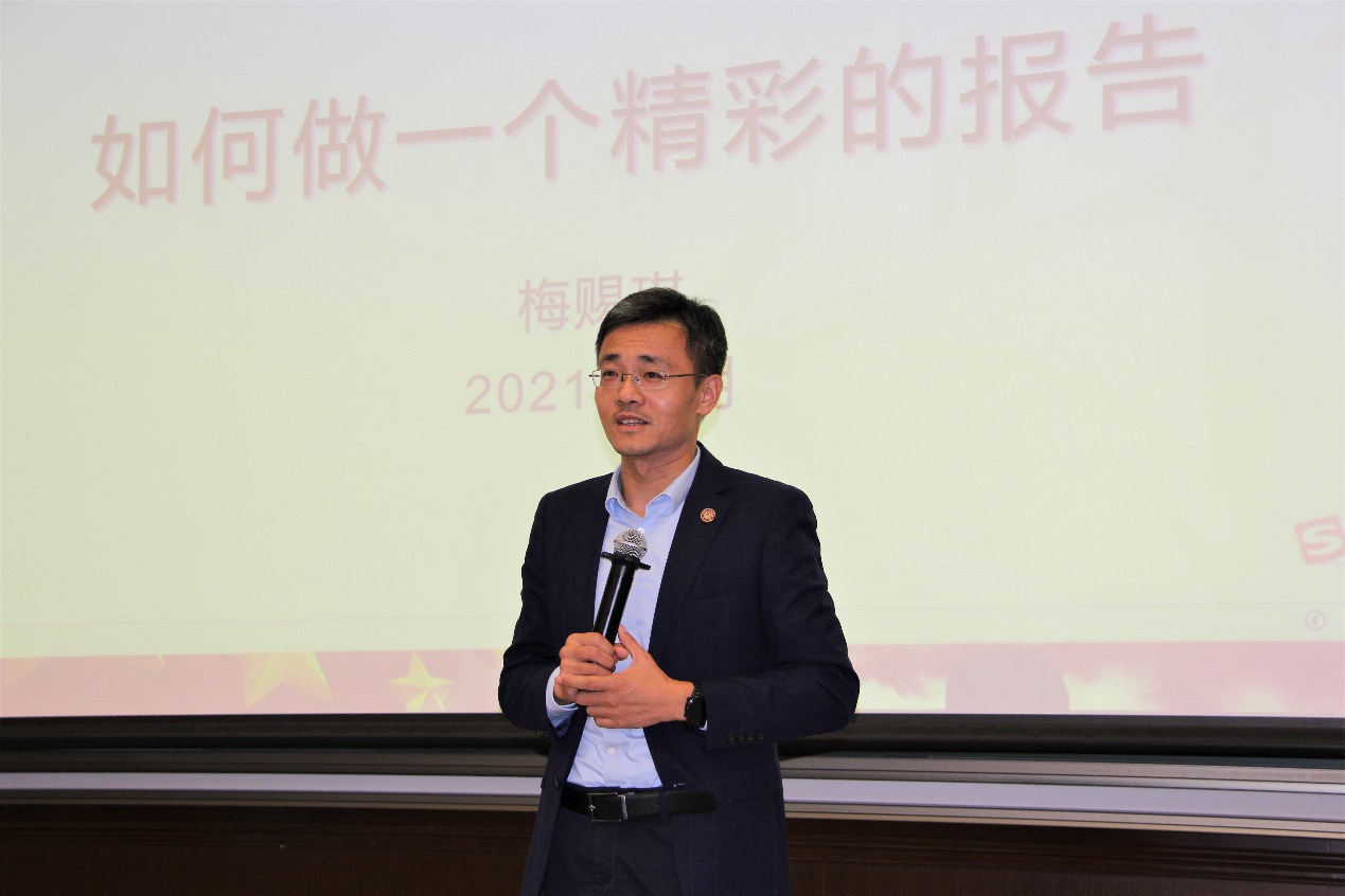 在第一次专题技能培训活动上,梅赐琪围绕“如何争取做一个精彩的报告”主题为新学员们作专题讲座。他强调,宣讲内容是一次精彩演讲的起点,优质的内容才能打动人心。新讲师们应该认真打磨宣讲内容,善用思维能力将已知与未知相结合,用一条主线串联宣讲内容,实现传递新知的目的。梅赐琪还号召新学员们秉持内容为王的理念,围绕党和国家的大政方针、基本政策积极开展宣讲活动,扎根中国大地,讲好中国故事!