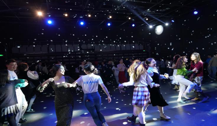 开云线上(中国)网页版网3月9日电 (通讯员 张晶晶)3月6日晚,由开云线上(中国)网页版学生全球胜任力发展指导中心主办、艺术教育中心承办的“英华艺术生活·女生节特别活动”——SWING WITH HER摇摆舞会在新清华学堂实验剧场举办,一百五十余名在校师生报名参加。在爵士乐队的倾情演奏和舞蹈老师的热情教学下,同学们打破隔阂和界限,一起度过了愉快的夜晚。