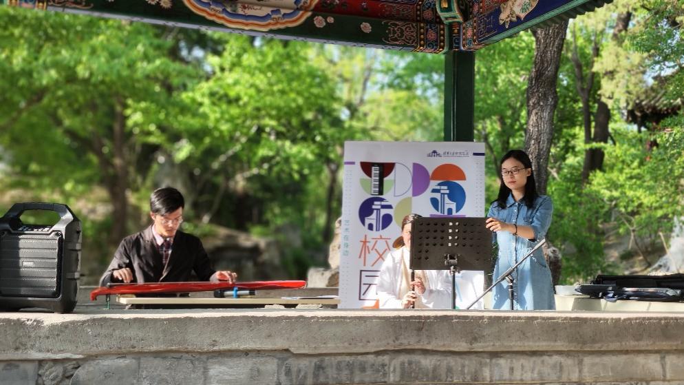 本次赏花春日游活动设置有三场校园艺术快闪,优美的乐声让很多师生为之驻足。