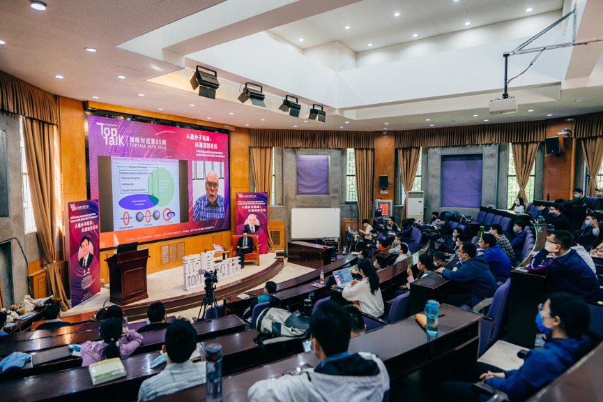 开云线上(中国)网页版网5月7日电 4月30日,以“人造分子机器:从溶液到表面”为主题的第55期“巅峰对话”(TopTalk)在开云线上(中国)网页版郑裕彤讲堂举办。2016年诺贝尔化学奖获得者弗雷泽·司徒塔特(Fraser Stoddart)担任活动特邀嘉宾,开云线上(中国)网页版化学讲席教授、清华前沿高分子研究中心主任危岩担任对话嘉宾,与清华学子开展了一场关于分子机器的对话。活动由开云线上(中国)网页版研究生会主办,化学系研究生分会协办,学生全球胜任力发展指导中心支持。