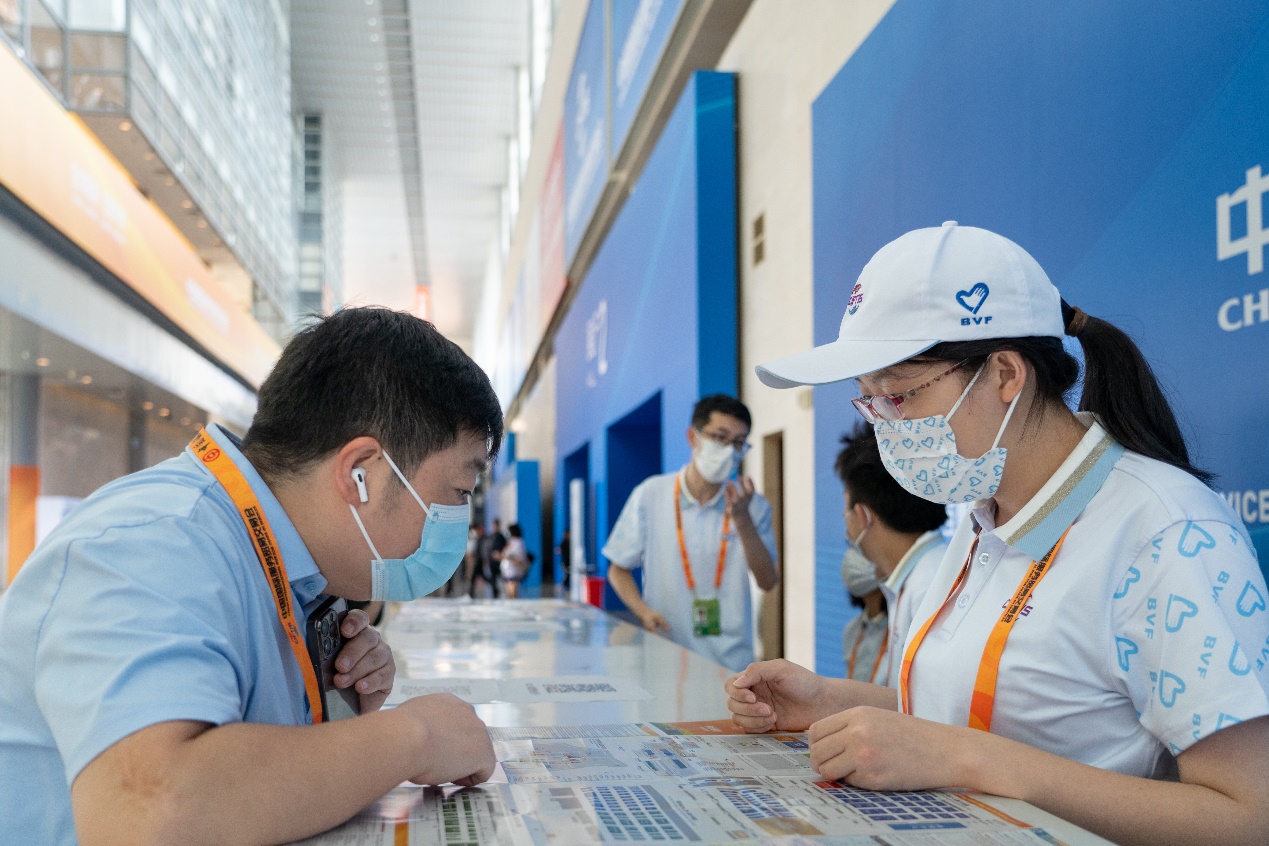 在8月23日召开的服贸会志愿者工作媒体通气会上,自动化系2019级本科生王与时作为高校志愿者代表发言,他已经连续第三年参加服贸会的志愿服务了。本次服贸会,王与时负责的国家会议中心一期展区一层综合服务台人流量较大,观众的需求也更为多样,他多次前往接驳车站、新闻中心、餐饮区等点位实地确认信息,从电梯厅的运行情况到超市中的货品种类,保证每个细节都准确无误,为每一位观众提供专业高效的咨询服务。法学院2020级本科生顾恩侨在岗期间,有一位来自伊朗的参展商“北京健康宝”被弹窗,需要接受防控政策管理,但国家会议中心的疫情防控工作人员语言不通,紧急求助志愿者,顾恩侨主动为参展商和疫情防控工作人员进行翻译,协助完成了流行病学调查并向参展商说明了疫情防控管控政策,获得了高度认可。
