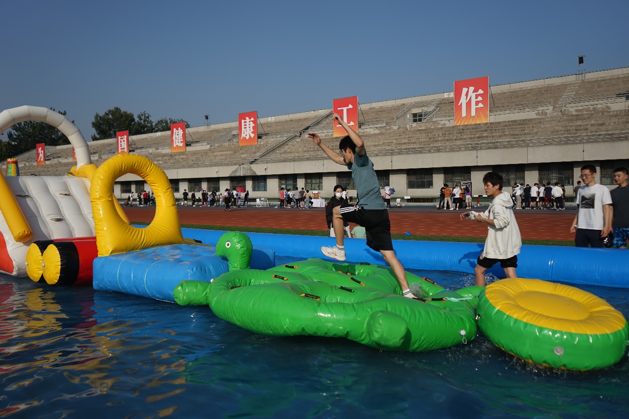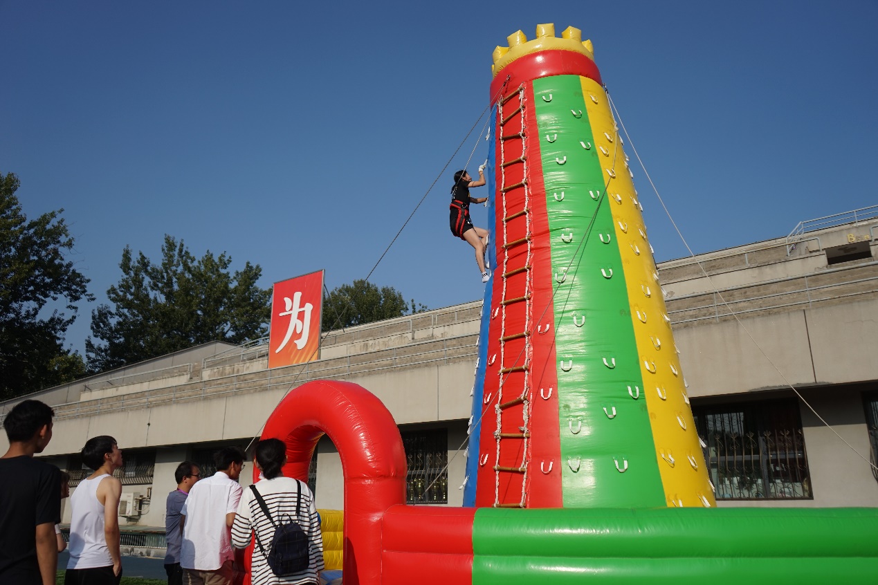趣味嘉年华设有趣味团体项目和趣味个人项目。团体项目采用两两PK制,包括飞盘九宫格、台式冰壶、VR滑雪机、迷你排球和水上闯关5个项目。个人项目包括攀岩、VR动感单车、投篮挑战、眼疾手快、冰球撞击、激光射击、投壶、足球飞镖8个项目。嘉年华现场热闹非凡,共有来自25个院系的60支队伍(包括15支课题组队伍,26个班团集体队伍和19个体育俱乐部队伍),共360位师生参加了团体项目,近800名同学通过“清动圈”和“水木汇”小程序报名参加了个人项目。