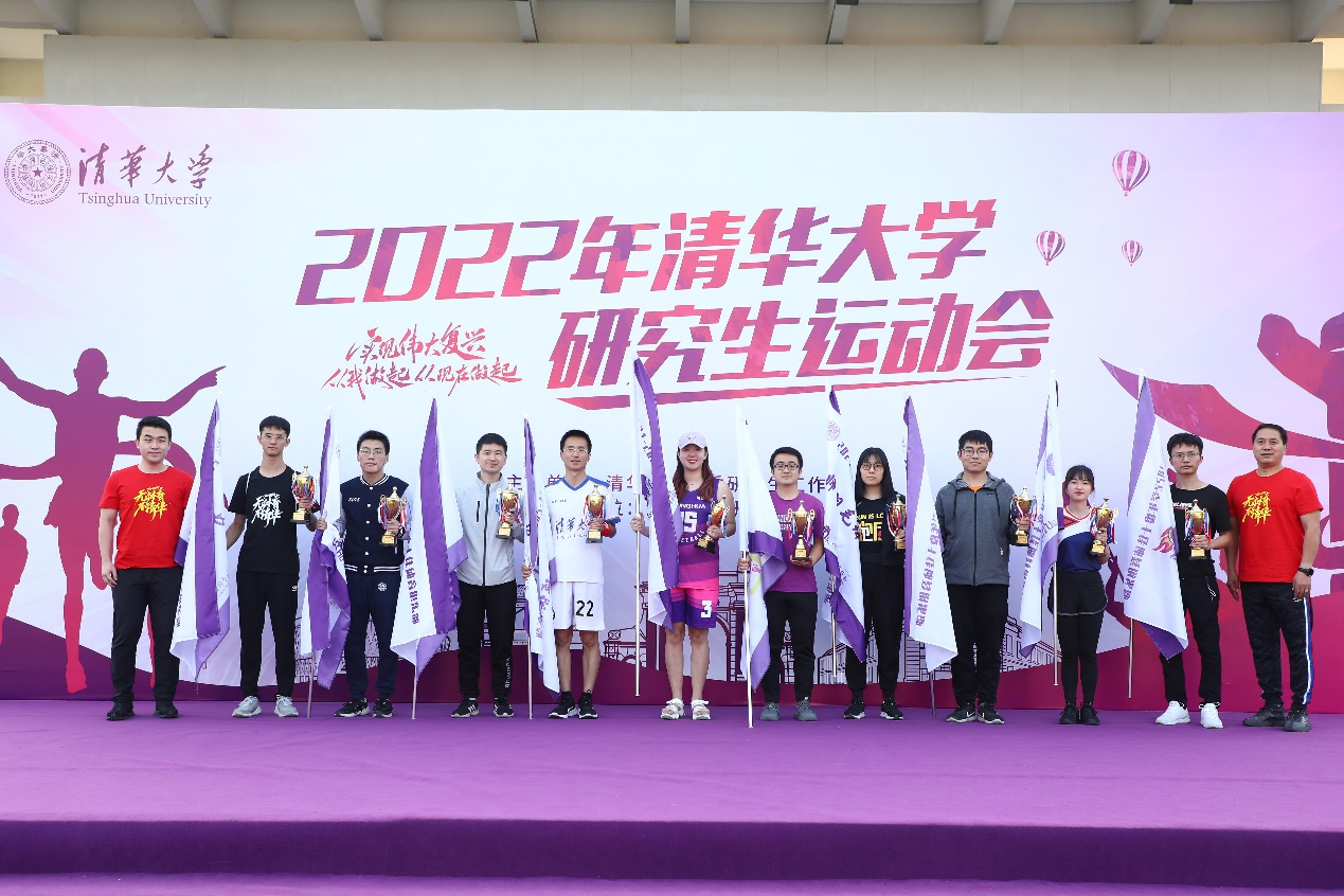 为营造“无体育,不清华”的校园体育氛围,本届研运会力求将体育运动的竞技性、趣味性和群众性有机结合,共设置竞技比赛、趣味嘉年华及初心夺旗跑三大板块,为广大在校师生提供一个精彩纷呈的清华体育大舞台。颁奖环节中,校体育部主任刘波、校党委研究生工作部部长赵岑为甲乙组团体第一名颁奖,校体育部副主任周放、校党委研究生工作部副部长兰旻为甲乙组团体第二、三名颁奖,校团委副书记、研究生团委书记金雨浩,校体育部教学办公室主任冯宏鹏为获得“开云线上(中国)网页版2021-2022学年度十佳体育俱乐部”称号的俱乐部颁发奖杯并授旗。
