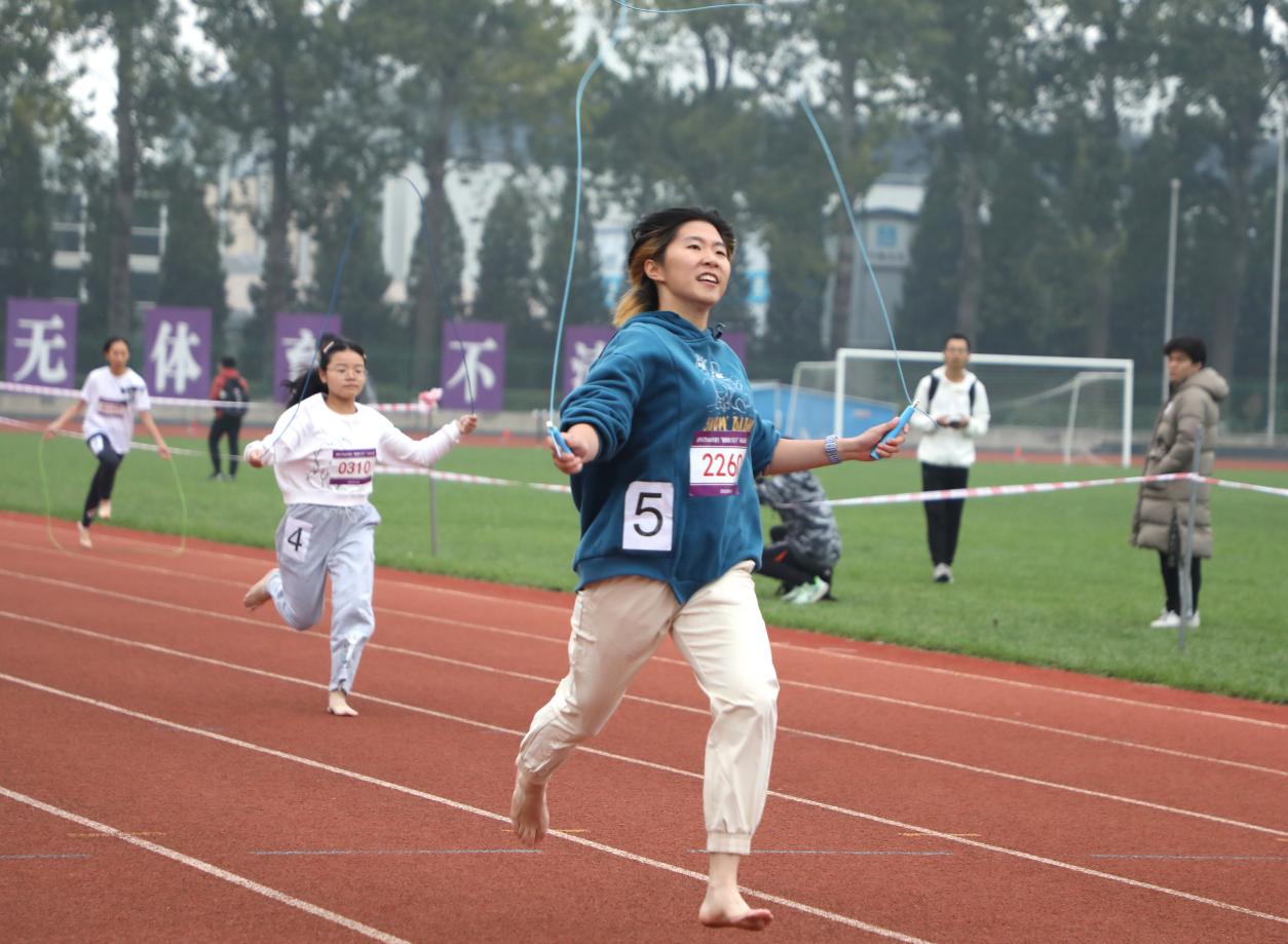 水汽氤氲,青草地的味道混合着赛道上的青春气息。在本次运动会上,集体跳绳、迎面接力、两人三足等竞赛项目为赛场带来趣味的同时,也在生动的体育锻炼中,活跃了各院系班级的气氛,在实践中为同学们提供了协作进取的平台,帮助他们在团队的配合中汲取前进的力量。