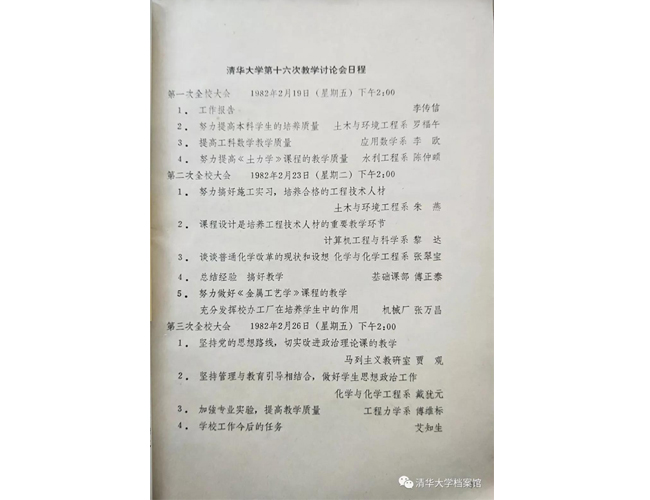 1981年党委常委会决定召开第16次教学讨论会,1982年2月19日一26日,第16次教学讨论会、讨论了课程改革、加强实验环节、进行生产实习交流和修订教学大纲的问题。教务长李传信作《在第十六次教学讨论会上的工作报告》,党委副书记、副校长艾知生作《1982年的工作任务》的报告,并动员全校师生员工积极参加文明礼貌月活动。本次教学讨论会就思想政治工作、课程改革、教学实践环节、教学管理工作四个专题组织专门讨论和经验交流。