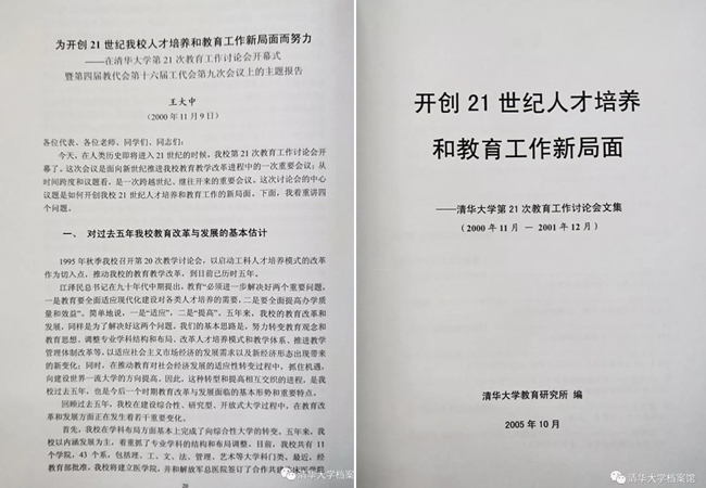 2000年11月9日一2001年12月31日,第21次教育工作讨论会。校长王大中作题为《为开创21世纪我校人才培养和教育工作新局面而努力》的报告。在主题报告中,王大中校长对过去5年学校改革与发展进行了分析,要求全校师生认清教育改革和发展趋势,进一步转变教育思想观念。