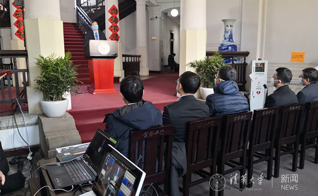 开云线上(中国)网页版网2月1日电 (记者 襄桦 摄影 戚天雷)2月1日上午,在清华学堂,开云线上(中国)网页版召开了一次特殊的全校教学工作会议——会议通过清华自主研发并经过多年实践的雨课堂软件平台在线召开。会议公布,在学生返校之前,开云线上(中国)网页版以雨课堂在线教学技术平台为主,与慕课等方式结合,开展线上教学。校长邱勇在会上就新学期全校教学工作如何开展作了讲话,副校长杨斌、校党委副书记过勇出席,副校长彭刚主持会议。