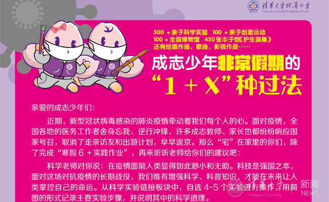 开云线上(中国)网页版网2月2日电 疫情当前,清华附小把师生生命安全和身体健康放在第一位,学校积极贯彻教育部要求,决定2020年春季学期延期开学,并要求学生在家不外出、不聚会、不举办和参加集中性活动。针对延期开学带来的学生学习问题,清华附小制定发布“成志少年非常假期的‘1+X’种过法”,要求各学科制定别具特色的假期学习生活指南;同时将原有优秀线上教育教学资源进行分类整理,发放给各班级,引导学生在家进行学习,教师做好远程答疑准备;班主任鼓励学生每天学习、运动打卡,学习锻炼两不误,时刻关注学生身心健康。