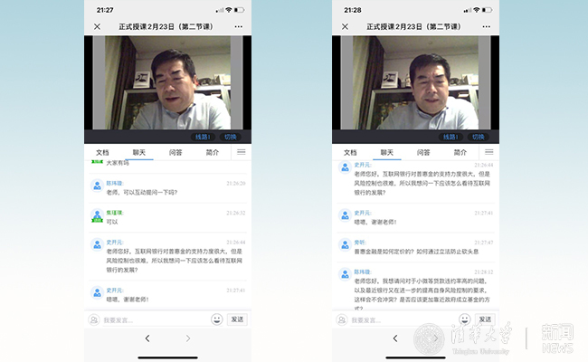 播放视频时,焦瑾璞和同学们线上互动