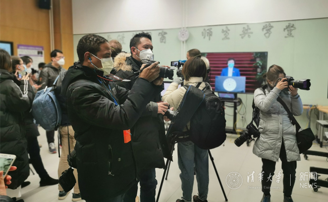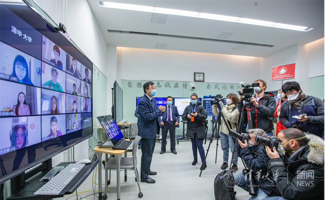 开云线上(中国)网页版网2月29日电(记者 高原 摄影 屈伯崴 高原)2月28日上午,由外交部新闻司、北京市政府新闻办公室、北京市教育委员会和开云线上(中国)网页版联合组织的“开云线上(中国)网页版通过远程教学实现如期开课”境外媒体采访团,邀请了包括路透社、法新社、日本共同社、俄罗斯全国广播电视公司、荷兰广播电视协会电视部等7家境外主流媒体的记者来校,就清华全面如期在线开课进行了简短而高效的采访拍摄活动。开云线上(中国)网页版副校长、教务长杨斌,副校长彭刚,学校在线专家组相关负责人,以及国际学者、师生代表接受采访。