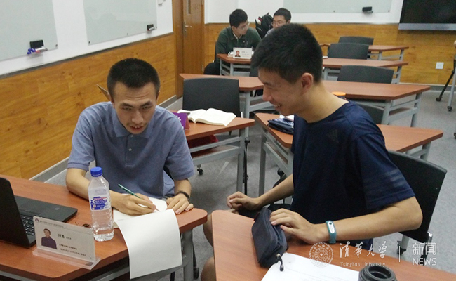 “答疑坊”前任队长刘通(左一)在六教开展线下答疑