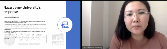 纳扎尔巴耶夫大学教务长办公室教学创新高级主管艾曼·哈米托娃(Aiman Khamitova)分享了来自哈萨克斯坦的经验之谈。在线教学有利于培养学生的自学和自律能力,学校需要重新权衡考核标准,因材施教,多元评价。在教育变革中,老师的角色也在经历从“讲授人”向“引路人”的过渡。因此,在网课时代中保持师生的无障碍、常态化的互动交流就显得尤为重要。