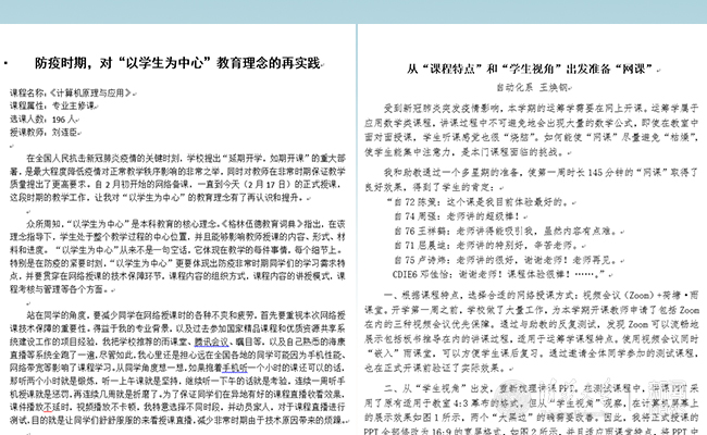 “以学生为中心”的教育理念充分体现在自动化系老师们网络授课的过程中。刘连臣是有196名学生选修的“计算机原理与技术”的任课教师,也是研究所教工党支部书记,在忙碌的工作之余,倾情撰写了《防疫时期,对“以学生为中心”教育理念的再实践》的教学总结。“运筹学”任课教师王焕钢在首次课程后,及时与大家分享了《从“课程特点”和“学生视角”出发准备网课》的心得。