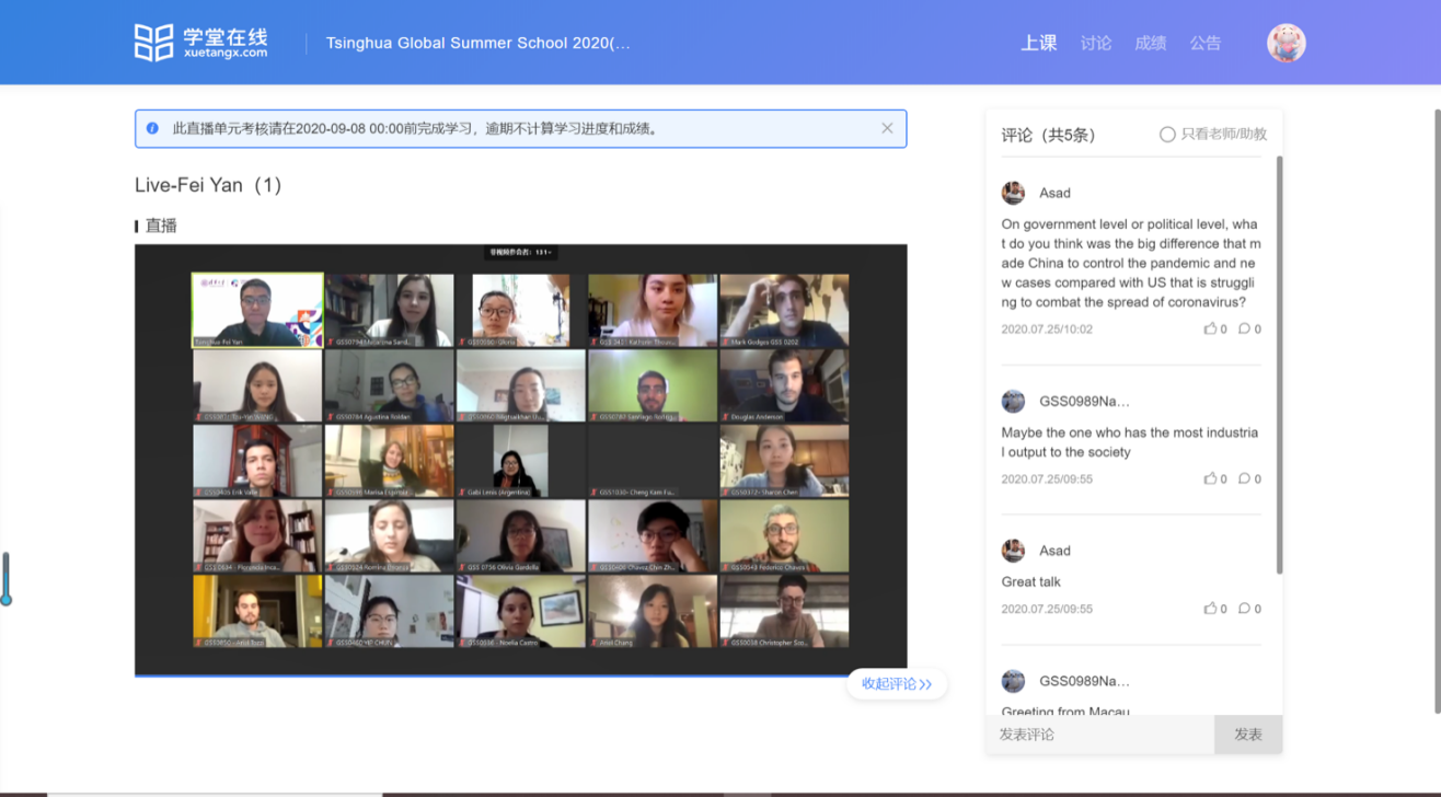 通过九天的线上学习和讨论,全球暑期学校的同学们迈出了“终身学习者”的第一步,成为了“志同道合”的同伴。虽然没有线下相聚,却已经形成了充满活力的学习与探索社群。正如瓦迪姆所说,“2020年是一个特殊的年份,但清华把世界各地的同学联系在一起,提供了继续在线学习的机会。”来自香港城市大学的印度学生古哈(Guha Arigna)也感慨道,清华全球暑期学校确保了同学们在疫情期间,依然能度过一个富有成效的暑假。