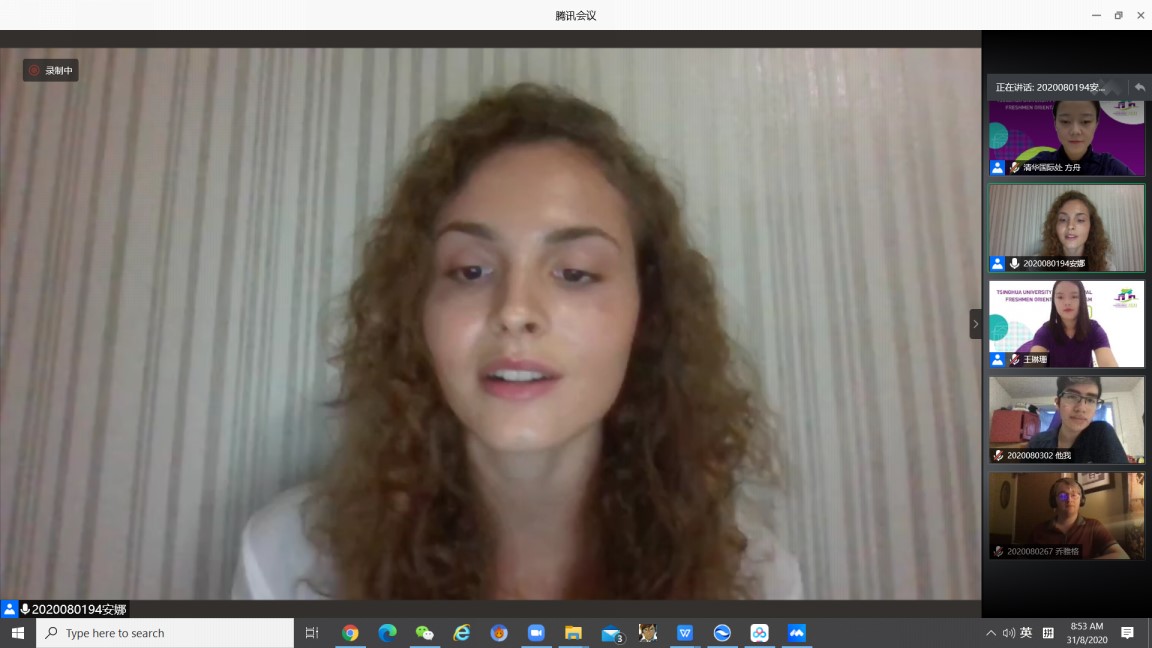 来自保加利亚的安娜作为新生代表分享了自己的学习目标和期待,她希望能不断提高语言水平与实践能力,融入大学生活,了解汉语文化和中国精神。安娜表示,虽然暂时无法在线下报到,但通过各种线上活动,已经提前感受到了清华的魅力,盼望能早日来到清华园。