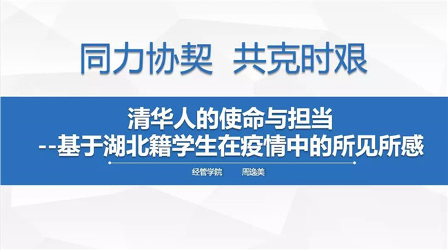江湖虽远,其心亦忧。新冠病毒疫情爆发以来,湖北前线究竟怎样,如何同受灾最重的同胞们心在一起、力在一起,如何发挥学生党员的先锋模范作用、正确应对疫情,成了学生党员们最关心的事情。讲师团线上宣讲方案上线后,两个支部第一时间与支部成员展开讨论,并且不约而同地预约了周逸美同学提供的课程“清华人的使命与担当——基于湖北籍学生疫情中的所见所闻”。