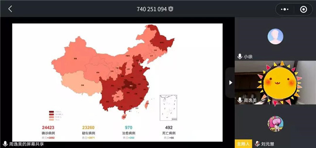 同学们在天南海北的家中上线,组织的温暖把大家凝聚到了一起。周逸美线上展示了湖北同学的典型生活轨迹、市内交通限制措施的实景图片,展示了当地人民在忧惧之余的镇定客观。一线战况依然胶着,防疫措施也始终有力。