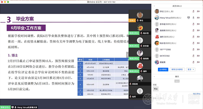 为满足毕业生同学参加学术活动和学术报告的需求,环境学院、航天航空学院、生命学院、清华-伯克利深圳学院等多个院系都将采用“云沙龙”“云讲座”等灵活形式开展线上学术活动。机械系筹备组织“云上博士生论坛”,优先满足拟毕业博士生的需求。美院硕士生毕业作品展举办时间、地点和展览形式将保持不变,做好从实物展览转为线上展览的准备,积极着手制定线上展览工作预案。