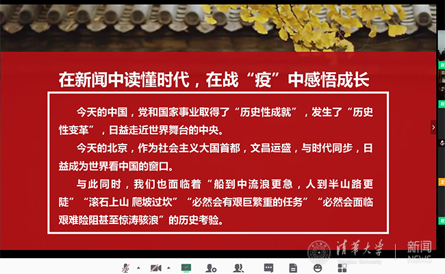 讲座引用大量的新闻报道、一手评论资料、战“疫”图片、新闻特写等资料,引领大家从新闻报道反映的典型群体和问题中把握时代脉搏与主流价值观念。对于大家关心的新闻报道选择标准,提出了准确、真实、及时、全面、深入、理性、人民至上和践行“四力”等一系列“黄金准则”。最后,他呼吁青年党员要以主流媒体的观点、评论为窗口,真正了解国内外大事和时代发展大势,不断提升媒介素养和深度思考能力。
