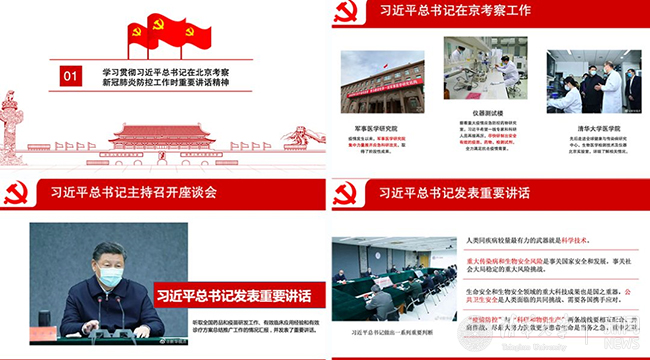 美术学院美9党支部组织全体党员和积极分子深入学习领会了习近平总书记在北京考察新冠肺炎防控科研攻关工作时重要讲话精神。随后,美9党支部党员孟彤就“瘟疫的图像:反思新冠肺炎期间的艺术创作”进行分享,讲解了历史上记录抗疫的名作,再现了人类在面对瘟疫时的顽强抗争,同时介绍了历史上的大瘟疫,并提出了自己的观点与想法,进一步启发了支部内党员和积极分子对于疫情防控的深入思考。