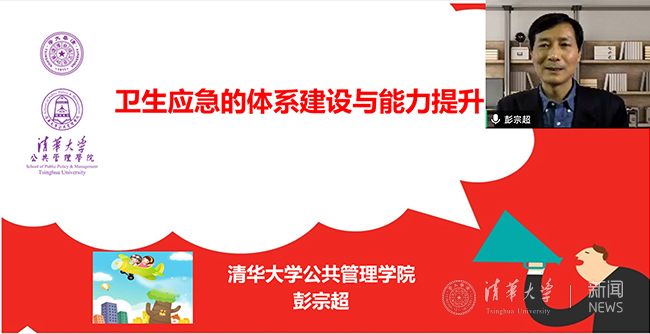 彭宗超作了题为“卫生应急的体系建设与能力提升”的专题报告。彭宗超首先结合疫情大数据,分析了近期国内外新冠肺炎疫情防控形势。随后,他进一步分析了我国卫生应急体系与能力建设现状,指出此次新冠疫情防控表明我国卫生应急体系在制度建设、队伍建设、物资储备、国际合作等方面有了长足进步,但在监测报告网络系统建设,多元一体医疗救治、防控、保障体系建设等方面还有一定不足。彭宗超还对未来我国卫生应急体系建设作了展望。他强调,我国卫生应急体系建设和能力提升,要坚持以习近平新时代中国特色社会主义思想为指导,提高防范化解重大公共卫生风险的能力,特别要重视不明原因和新发急性传染病风险防控,全面加强“预防控制体系、应急组织体系、医疗救治体系、医保救助体系、法制保障体系、资源保障体系”六大体系建设,进一步提升“源头预防化解能力、早期监测预警能力、依法科学防控能力、峰值压力应对能力、舆情风险沟通能力、各级联防联控能力”六大能力,做好卫生应急的各项充分准备。讲座最后,彭宗超还与同学们就公共应急管理、舆情风险沟通、疫情中的国际关系等话题进行了线上互动交流。