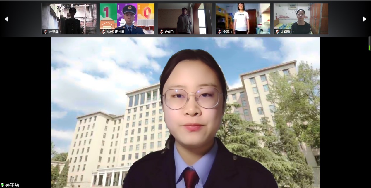 国旗仪仗队代表吴宇涵表示,疫情期间,清华师生秉承岁岁积淀、代代相承、赓续不改的清华精神,用实践诠释了什么是“行胜于言”,什么是“社会担当”。清华国旗仪仗队队员们虽然被疫情困在家中,无法相聚主楼、紫荆操场进行升旗和训练,仍然坚持每周线上观旗,克服一切障碍进行线上训练。吴宇涵说:“虽然这样的日子并不轻松,但是困难无法击败我们,只会让我们更凝聚、更加众志成城。这可能是我们送给母校的一份最好的生日礼物。”