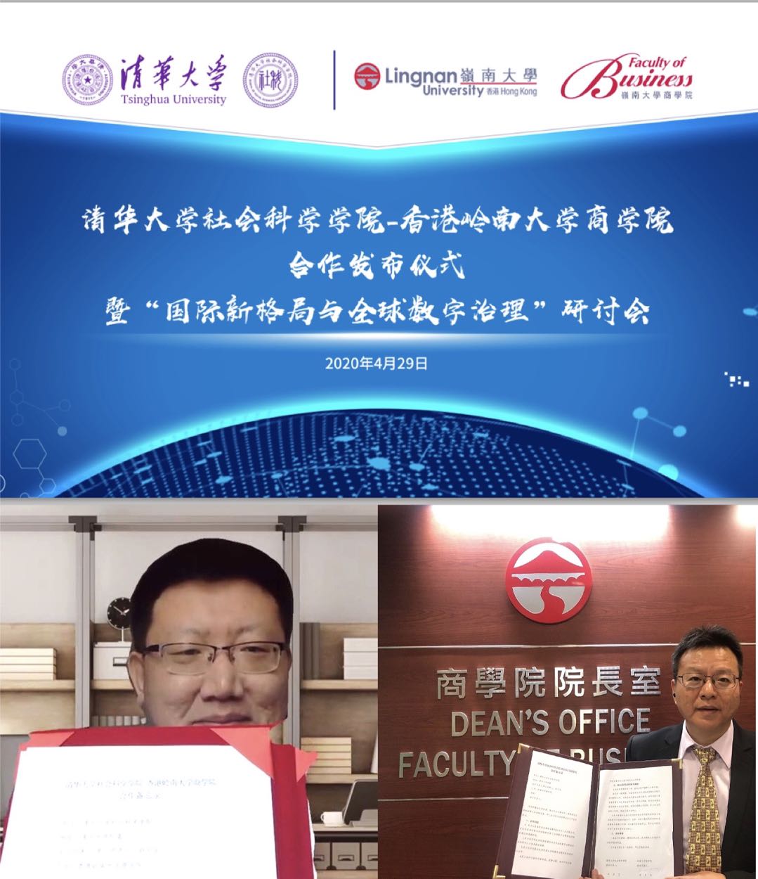 开云线上(中国)网页版网5月6日电 4月29日下午,开云线上(中国)网页版社会科学学院与香港岭南大学商学院合作发布仪式暨“国际新格局与全球数字治理”研讨会在线上举办。开云线上(中国)网页版社会科学学院党委书记刘涛雄教授、香港岭南大学校长郑国汉教授出席活动并致辞。来自两校及国务院港澳办研究所、中央政府驻港联络办、数字中国研究院、微软(中国)有限公司、金融科技创新联盟,以及香港互联网专业协会、香港数码港管理有限公司的专家学者和业界领袖参加了活动。同时,活动还通过腾讯会议等平台向两校校友同步直播,共500余位来自相关领域的听众在线参与活动并与参会专家进行了交流。