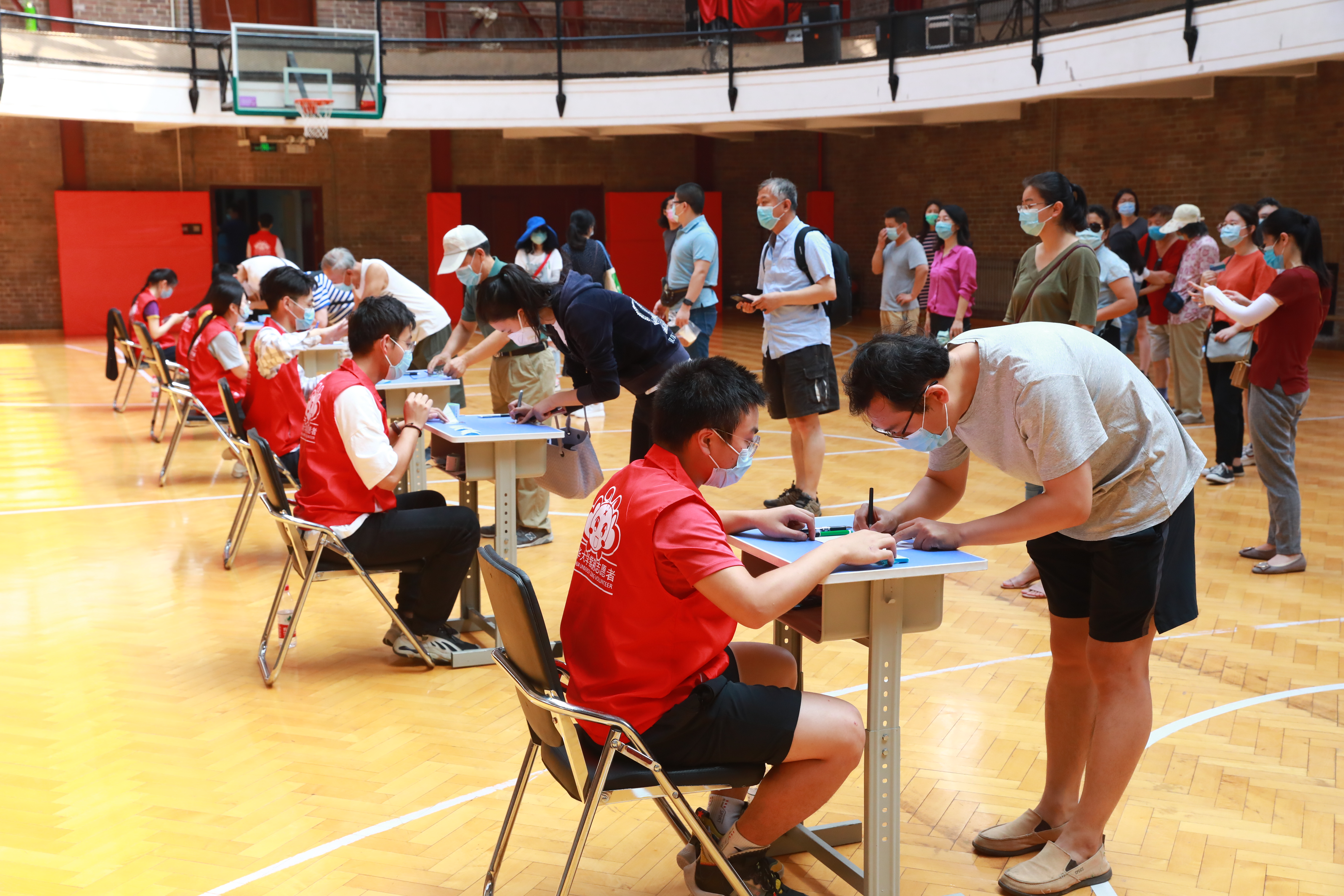 从入口处信息登记到咽拭子采集全过程不超过5分钟,身着红马甲的志愿者在每个环节都提供了细致到位的服务保障工作。累计有200余位校机关志愿者参与其中,确保教职工安全高效地完成核酸检测。